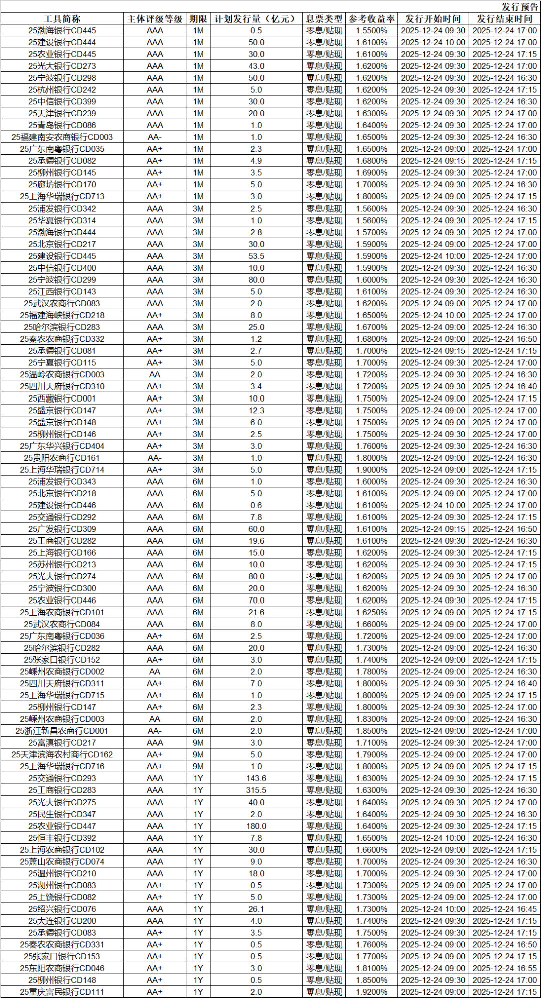 同业存单发行86只,发行量951.6亿元,较前日减少152.0亿元。