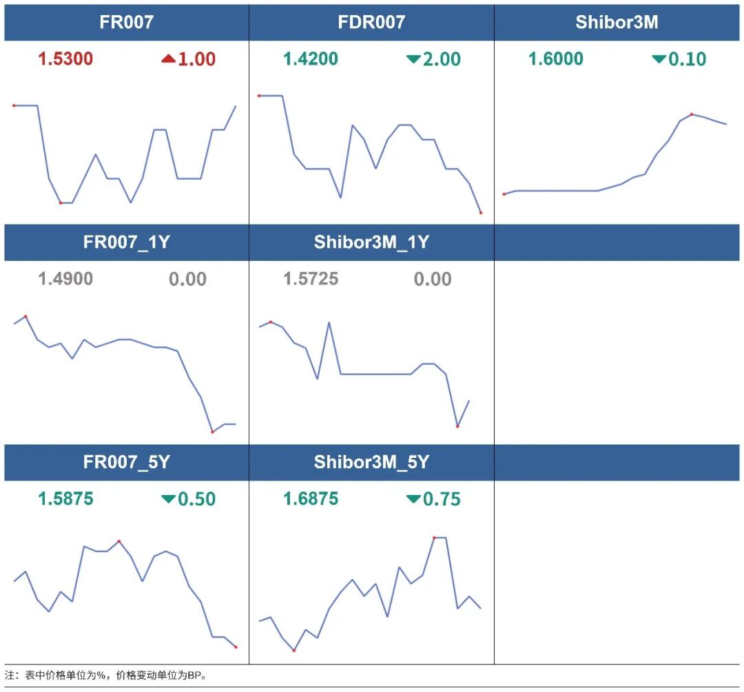 隔夜、1个月、3个月Shibor分别报1.272%、1.567%和1.6%,分别较前持平、上行0.8BP和下行0.1BP。
