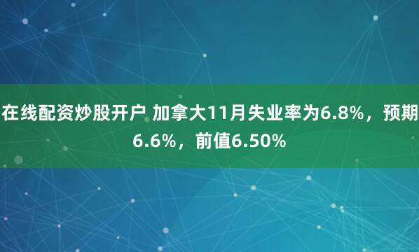 在线配资炒股开户 加拿大11月失业率为6.8%,预期6.6%,前值6.50%